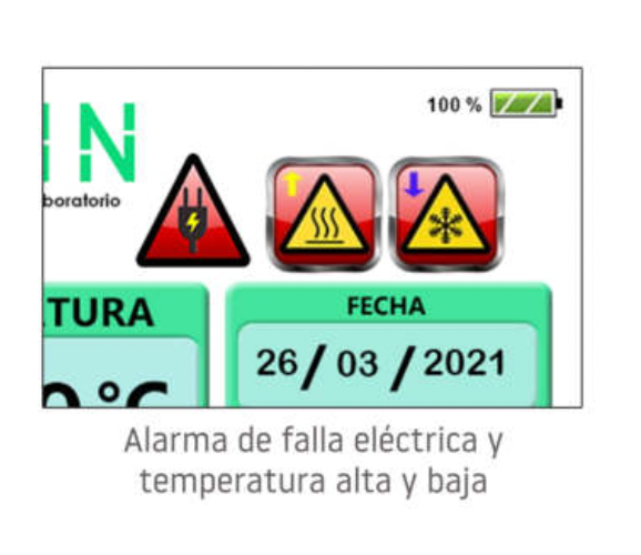 - Respaldo para monitoreo de temperatura y alarmas en caso de falla eléctrica